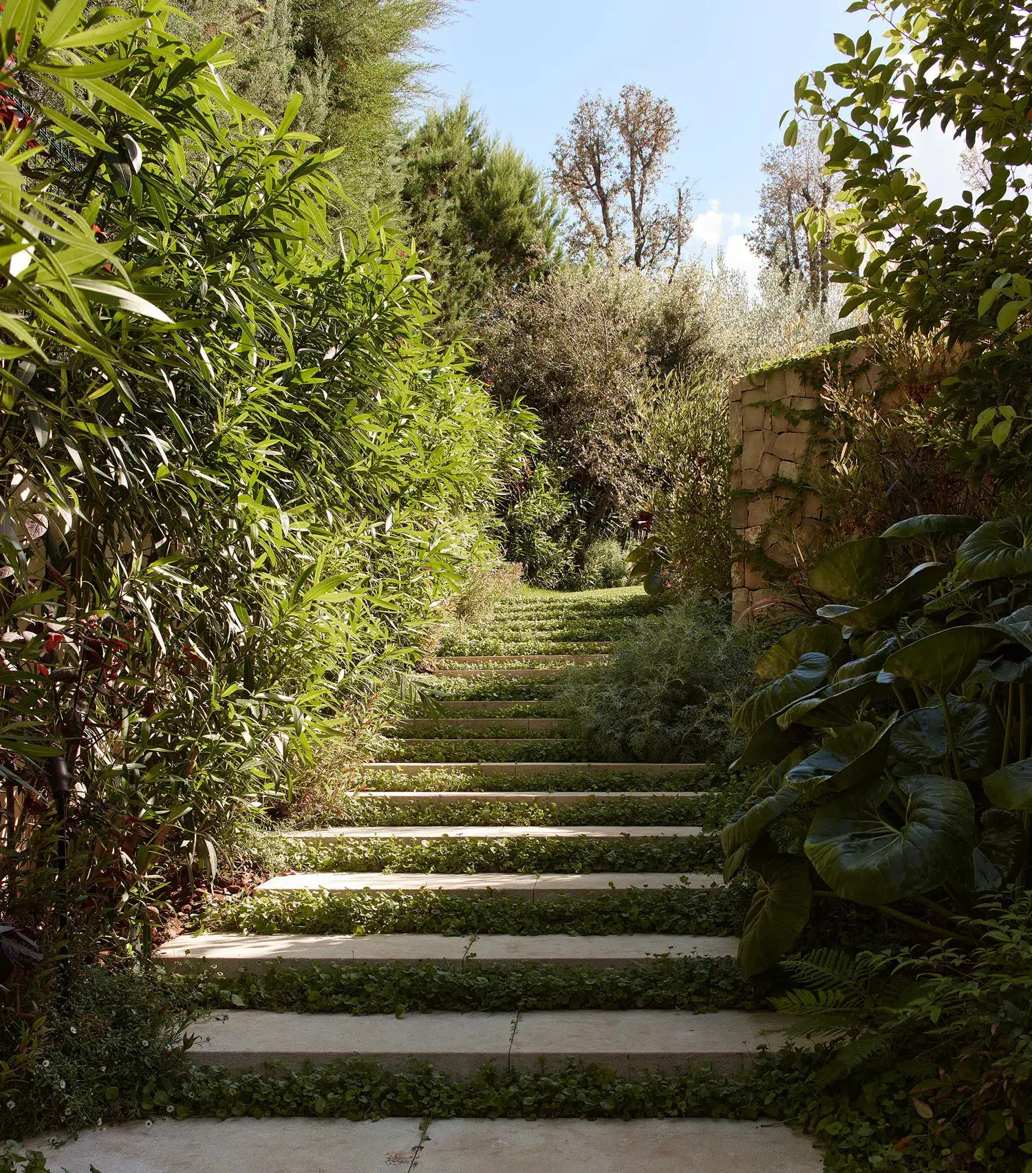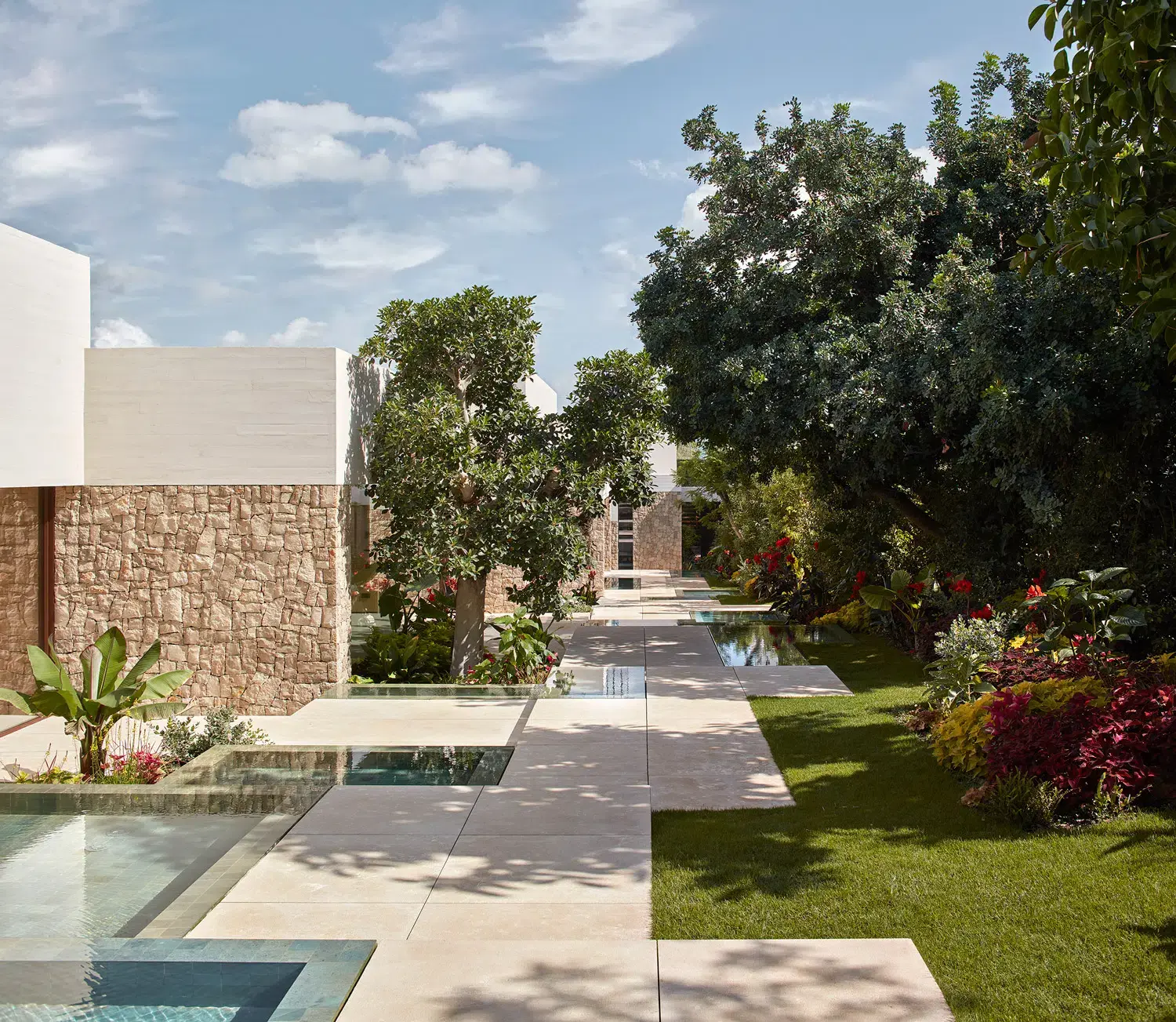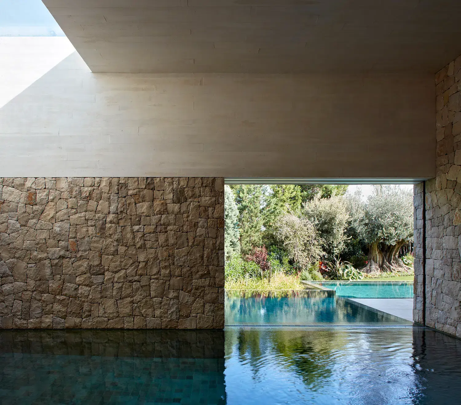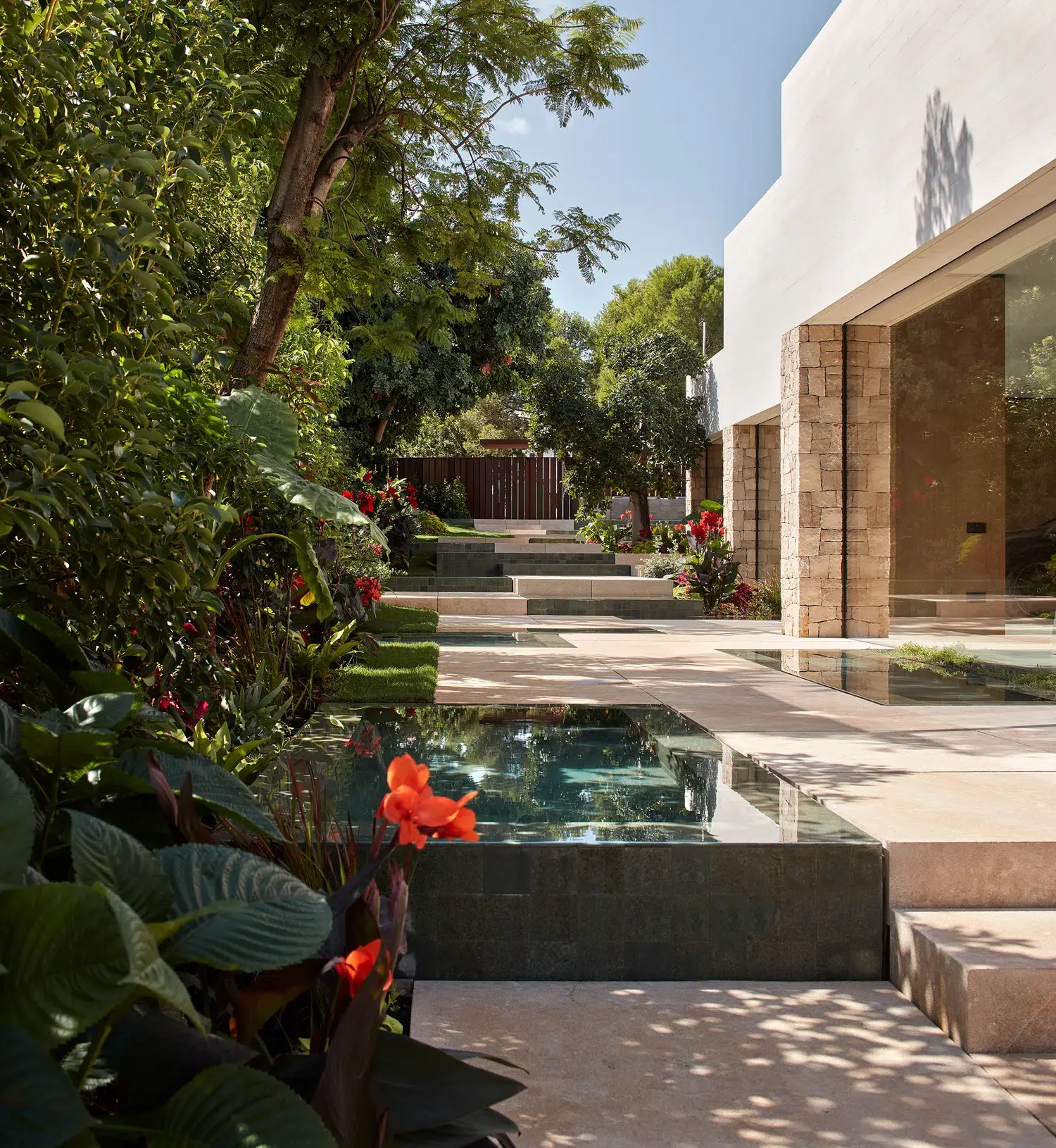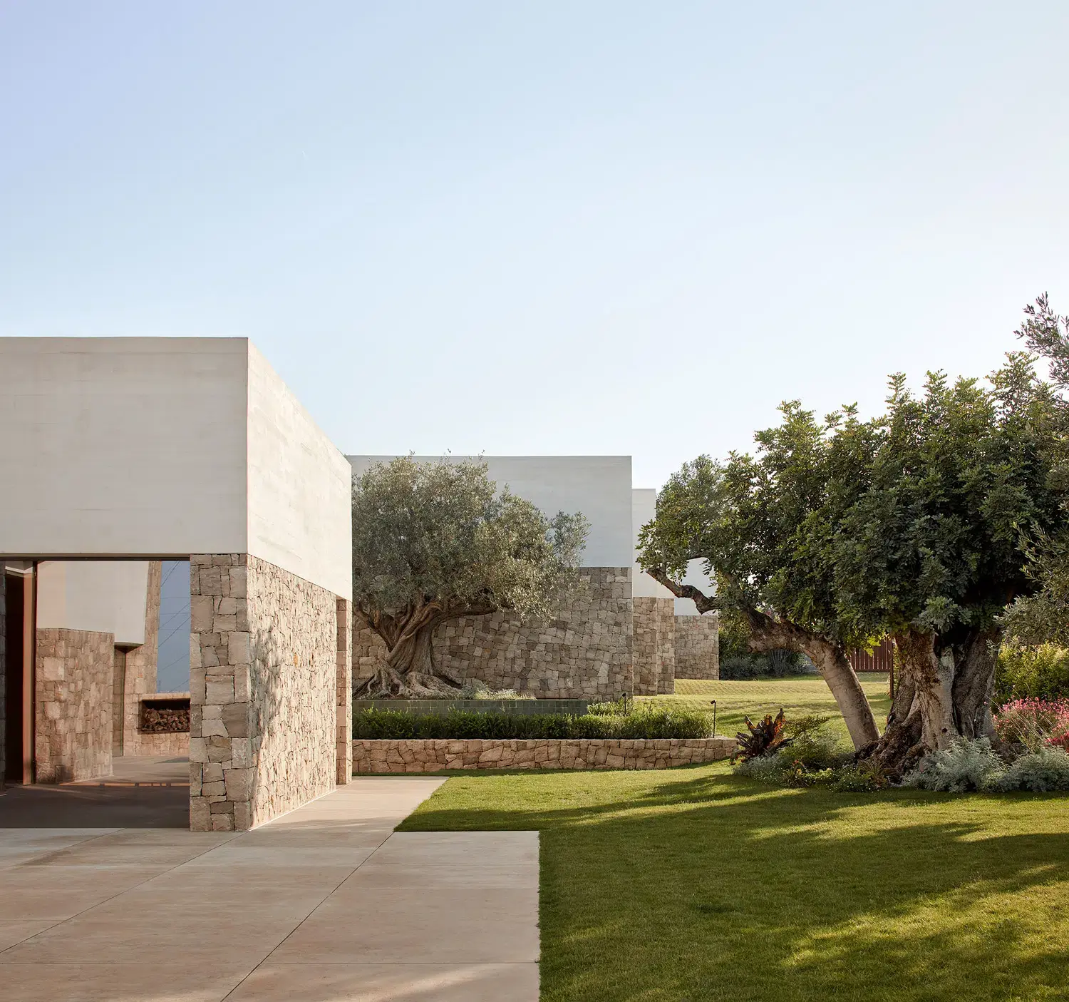 En casa Olea se plantea un paisaje en si mismo compuesto de tres escenas. Un jardín mediterráneo, con olivos centenarios que retuercen sus troncos para abrazar con calidez. Esencia mediterránea interpretada hacia un jardín colorista y sensorial.